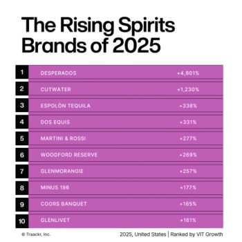 In terms of the rising spirits brands of 2025, AB InBev’s Cutwater came out on top, with a VIT growth of 1,230%.