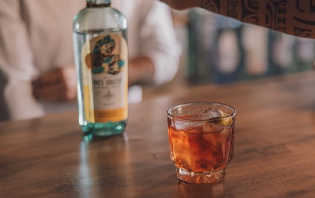 Method: Combine the rum, juice and bitters directly in the glass. Stir gently until well incorporated. Top with Indian tonic water. Garnish with orange zest.